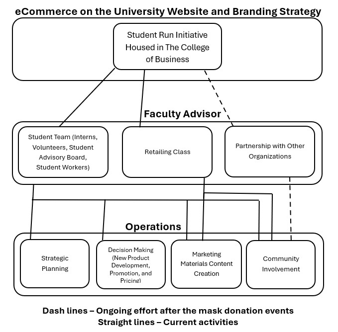 By early 2019, a multidisciplinary team of students, staff (administrative assistants and budget personnel), and faculty formed to manage operations, purchase the first inventory, and coordinate marketing strategies. The initial products arrived in Spring 2020 amid the COVID-19 pandemic. Despite the challenges posed by the global crisis, businesses continuously revamped their business models to adapt to shifting consumer behaviors and navigate supply chain disruptions. Similarly, business schools responded proactively to reinvent course delivery to maintain students’ learning experiences and learning outcomes. Students were expected to experience campus life as part of experiential learning; however, this expectation became impossible during the pandemic. Although the pandemic disrupted traditional campus experiences, it also underscored the importance of flexible, real-world learning environments—reinforcing the value of experiential education even in times of uncertainty.
